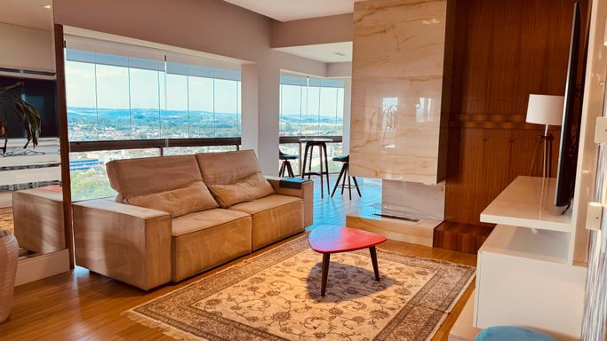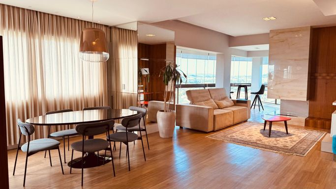 Encante-se com este maravilhoso apartamento finamente mobiliado, com 157m², distribuídos em ambientes amplos, modernos e cheios de personalidade.
