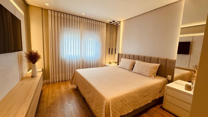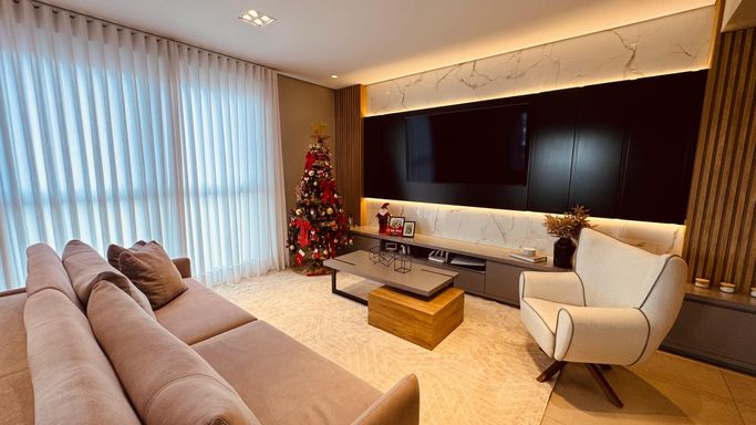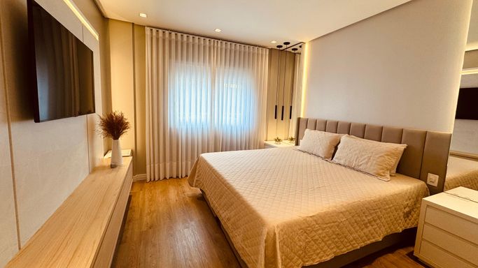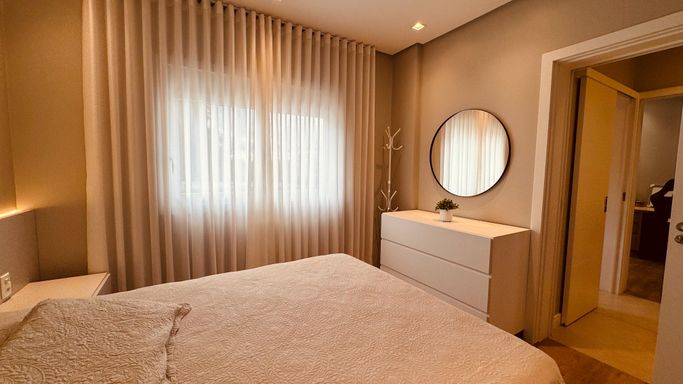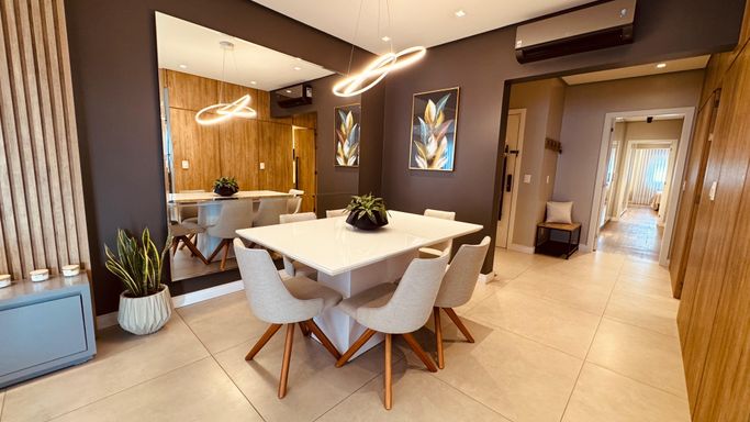 Apartamento espaçoso finamente mobiliado com 152 m² privativos, projetado para oferecer amplitude e privacidade: