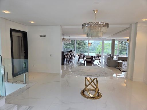 Localizada no prestigiado Condomínio Aspen, esta residência encanta pela arquitetura contemporânea de linhas elegantes e pela sua posição privilegiada no topo de um morro, revelando uma vista deslumbrante para o verde exuberante do vale ao seu redor.