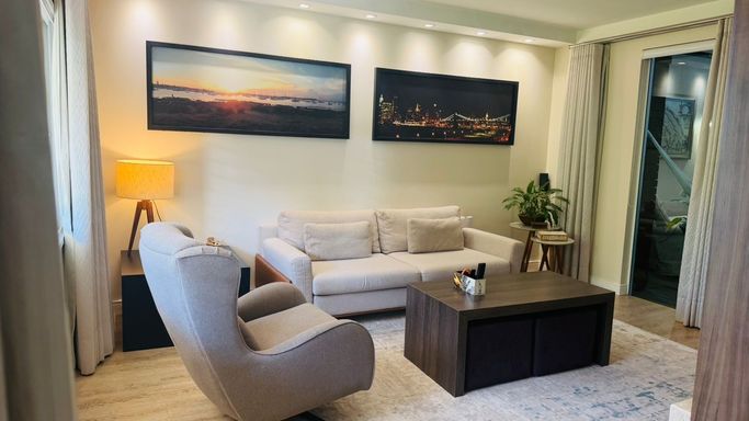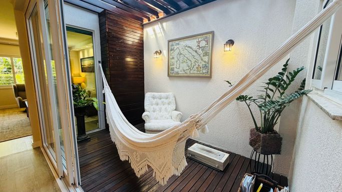 A área social integra uma elegante sala de estar a um charmoso Espaço Zen, ideal para momentos de relaxamento, leitura ou contemplação.