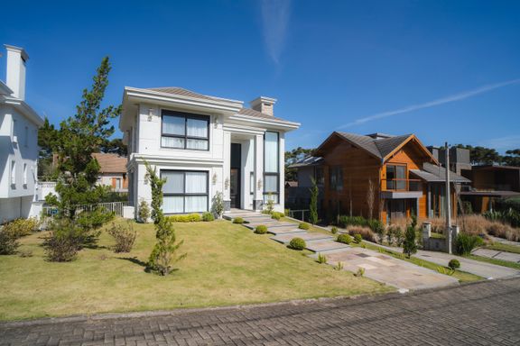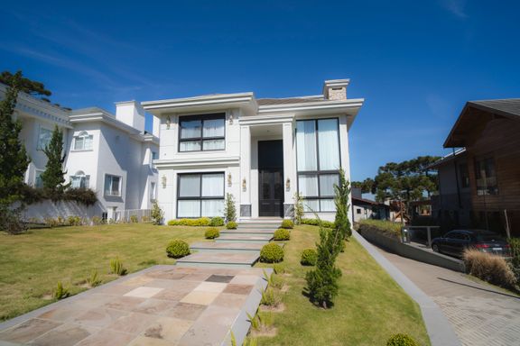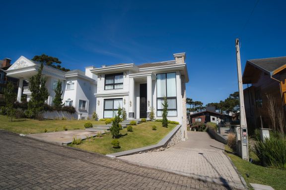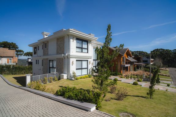 A residência conta ainda com duas vagas de garagem e está situada em um dos condomínios mais exclusivos de Gramado, proporcionando segurança, privacidade e alto padrão de vida.